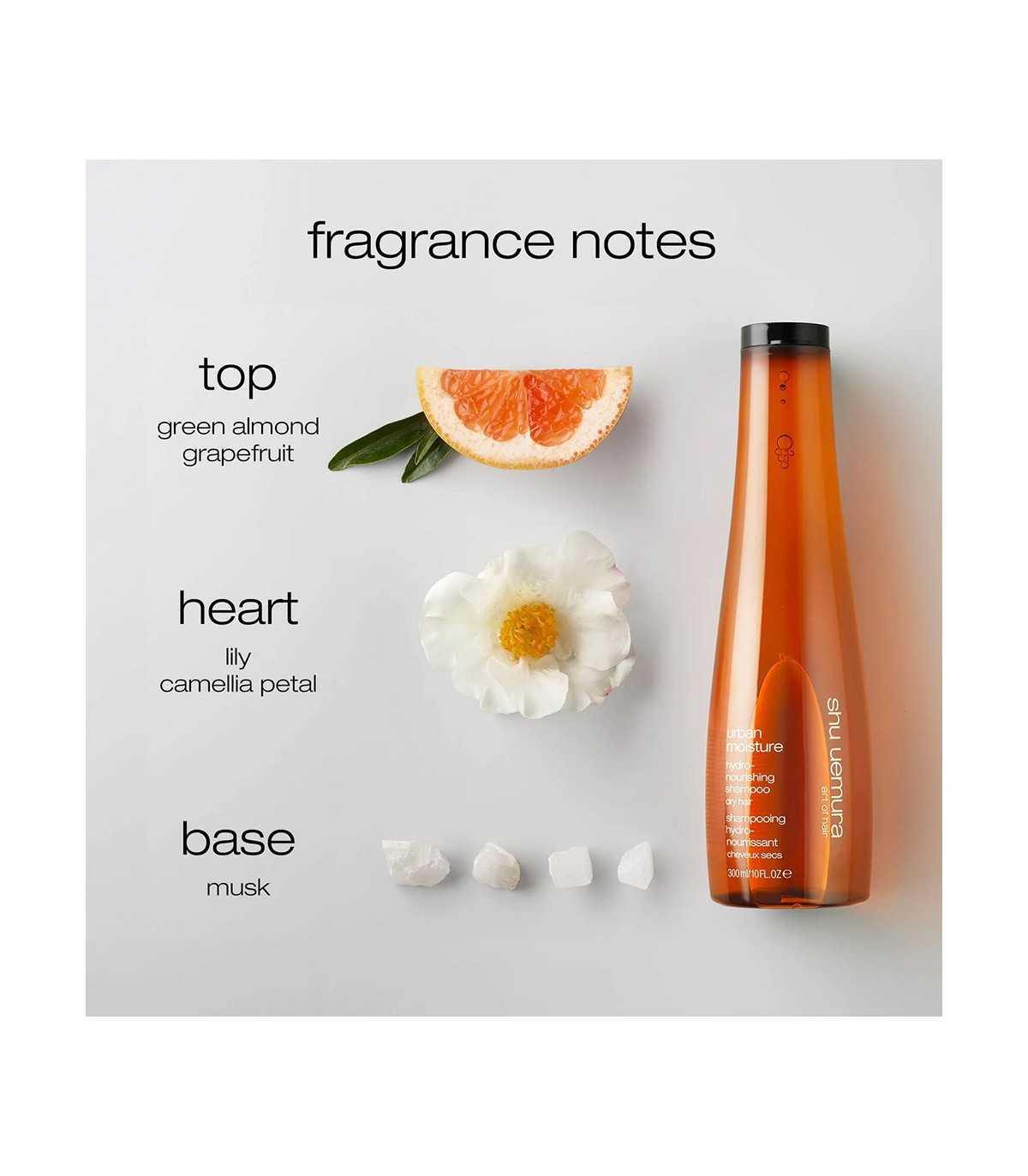 Apply to wet hair and scalp, lather with massaging motions, and rinse thoroughly. Repeat if necessary. For optimal care, use together with Urban Moisture conditioner and mask.