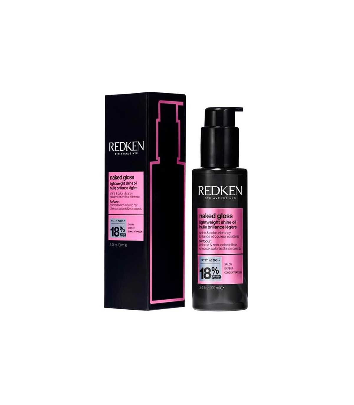 Redken Acidic Color Gloss Naked Gloss es un aceite de brillo ligero para todo tipo de cabellos, especialmente teñidos y apagados, que realza el brillo sin apelmazar. Aporta hasta un 130% más de brillo, hasta 9 veces más de hidratación, reduce el encrespamiento hasta un 80% durante 72 horas, protege contra el calor hasta 230 °C y ayuda a que el color se mantenga vivo durante más tiempo. Gracias a los ácidos grasos omega y al aceite de hueso de albaricoque, el cabello está más suave y sedoso, y su fórmula no deja pegajosidad ni residuos visibles.