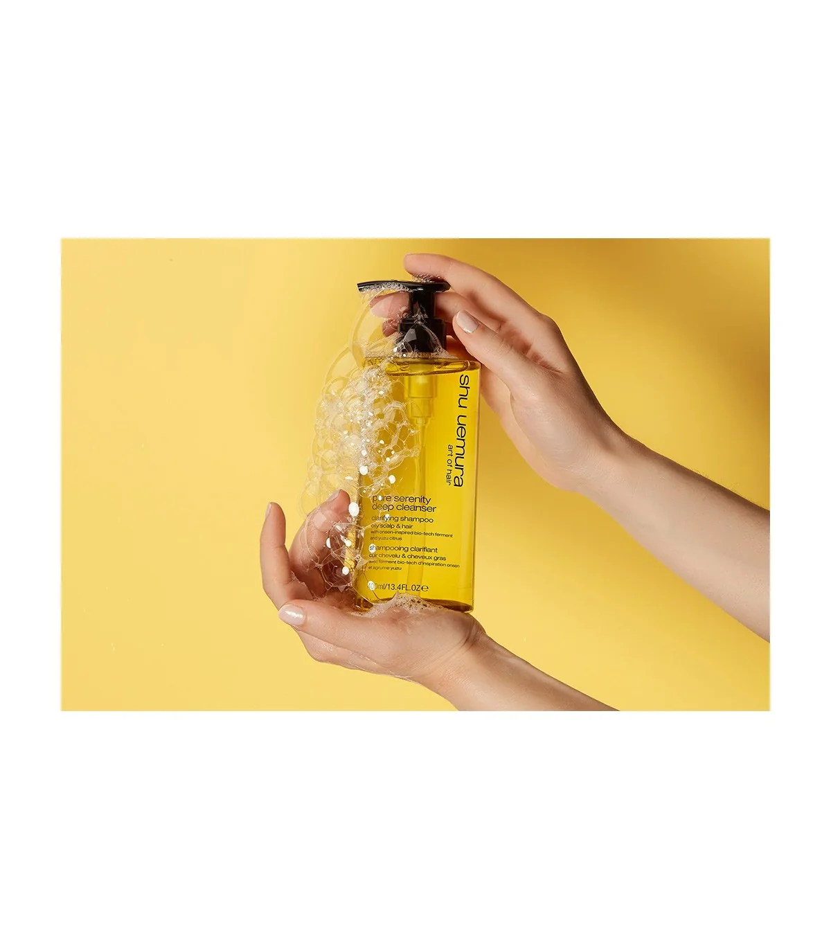 Shu Uemura Pure Serenity Deep Cleanser è uno shampoo detergente profondo per cuoio capelluto da normale a grasso. Rimuove efficacemente il sebo e le impurità, ripristina l'equilibrio, prolunga la sensazione di freschezza e dona leggerezza alle radici. Rende i capelli più ariosi e voluminosi senza seccare le lunghezze. Adatto per un uso regolare.